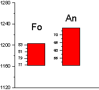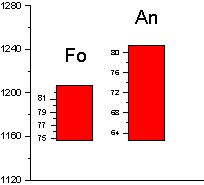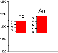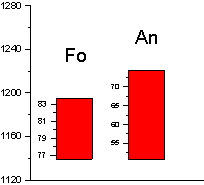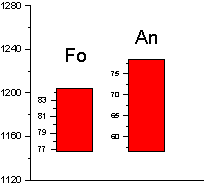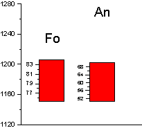 Подытоживая результаты расчетов, получаем следующие величины. Температура 1195 0C давление 1,3 кбар, содержание воды 0,2 мас.%, фугитивность кислорода отвечает условиям буферному равновесию никель-бунзенит (NNO).