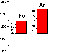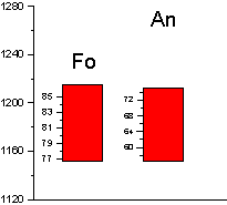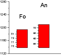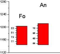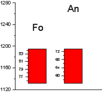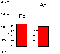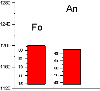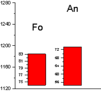 Далее снова проводились расчеты в КОМАГМАТЕ, но уже с новым значением давления, и новая полученная температура использовалась для расчета шпинелей. Таким образом, за несколько итерации значения температуры и давления сошлись на величинах 1195 0С и 1,3 кбар соответственно.