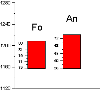 В результате расчет равновесия оливин-расплав для коррекции составов расплавов по модели Форда, кроме равновесных составов, были получены оценки температуры кристаллизации, значения температур приведены в таблице 20. Среднее значение температуры 1208,35 0С.