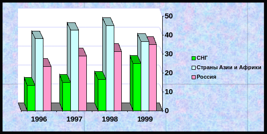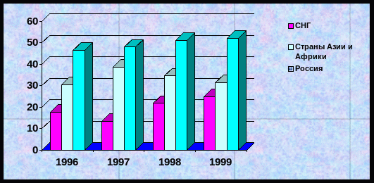о регионам СНГ, странам Азии и Африки и России (в %)