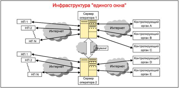 Заметим, что принцип «единого окна» - это наиболее естественный и очевидный подход к построению систем, в которых предполагается взаимодействие множества субъектов. Точно так же устроены, например, Интернет или телефонная сеть: каждый абонент взаимодействует ровно с одной точкой доступа. Через эту точку он получает весь спектр услуг и обменивается информацией с другими абонентами.