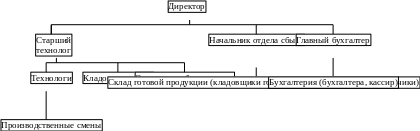 Старшему технологу подчиняются два технолога, кладовщик сырья и операторы оборудования. Технологи руководят процессом производства.