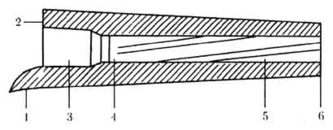 1 - патронный ввод; 2 - казенный срез; 3 - патронник; 4 - пульный вход; 5 - нарезная часть канала ствола; 6 - дульный срез.