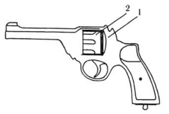 У револьверов запирающим устройством является задняя часть рамки (рис. 4) или, как в револьвере Нагана, специальная деталь – казенник.