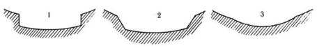 1 — прямоугольный; 2 — трапециевидный; 3 — сегментный