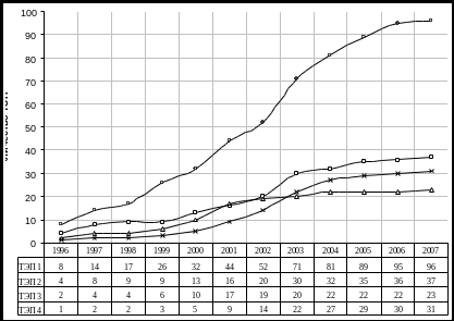 | 1996 | 1997 | 1998 | 1999 | 2000 | 2001 | 2002 | 2003 | 2004 | 2005 | 2006 | 2007 | ||