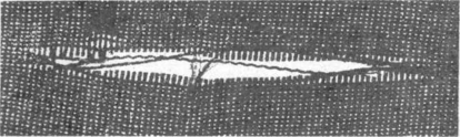 Иногда место удара на ткани обнаруживается только по изменению расстояния между нитями основы.