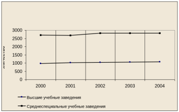 | Годы | Количество учебных заведений | Прием, тыс. чел | ||