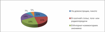 21% из опрошенных ответили, что не готовы выразить свое недовольство в газете, теле - или радиопередачи. Поскольку высказываясь в открытом источнике СМИ, будет оглашено имя человека. Многие боятся, что сказанные заявления могут каким-то образом повлиять на отношение коллег по работе или друзей, знакомых.