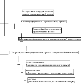 Д.Н. Барах выделяет два уровня системы органов государственной власти: федеральный и субъектов Федерации. Федеральный уровень системы исполнительной власти представлен автором следующим образом: