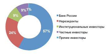 Вслед за ним член Наблюдательного совета и первый заместитель председателя Банка России Алексей Улюкаев поспешил заверить публику, что регулятор в настоящее время имеет право снизить свою долю в Сбербанке до 50% плюс одна акция. "До этого мы вправе по согласованию с правительством такие шаги предпринимать. Когда сложатся соответствующие условия, мы эти шаги предпримем", - заявил Улюкаев журналистам. Котировки акций Сбербанка успели отреагировать ростом в +0,46%. Рассмотрим, как складывается структура акционерного капитала Сбербанка на сегодняшний день (Рис.1)