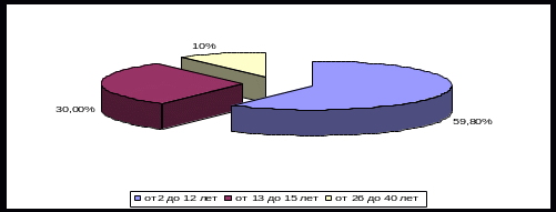 Рис.2 Возрастное соотношение внешней аудитории ООО «РУСИНТЕРФАРМ».