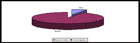 В ходе проведенного исследования были опрошены 15 сотрудников, которые составляют весь штат сотрудников. Из которых 7% (1 человек) мужчина и 93% (14 человек) женщины (рис.16):