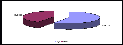 На вопрос: «Являетесь ли Вы пользователем Интернет?», опрошенные ответили следующим образом: да ответили 58% (62 человека), а нет, ответили 42% (45 человек) (рис. 14):