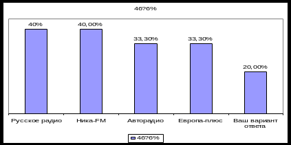 На четвертый вопрос: «Какое радио Вы предпочитаете слушать?» получены следующие данные (рис.10):