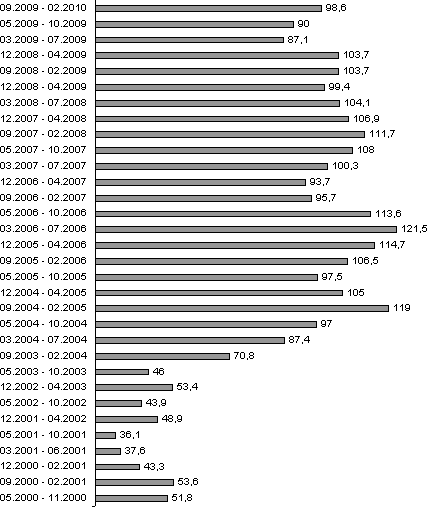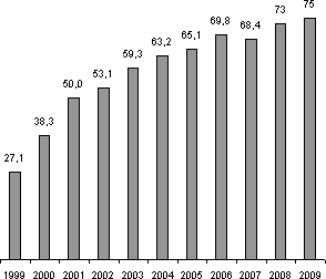 «Ведомости» – это ежедневная деловая газета для профессионалов бизнес-сообщества, выходящая с 1999 года. Создатель и идеолог газеты – издатель Дерк Сауэр. На сегодняшний день тираж печатной версии газеты – 75 тыс. экз. Динамику роста тиража можно увидеть на схеме: