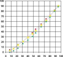 Анализируя градационные кривые при воспроизведении изображения с различной линиатурой, можно отметить, что при увеличении времени экспонирования наблюдаются 1-2% искажения в светах, но во всем остальном диапазоне градаций градационные кривые близки к идеальным. Такие результаты характеризуют пластины Futura Oro как материалы, которые пригодны для воспроизведения оригиналов различного типа с различной линиатурой.