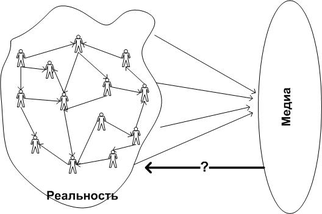 В чем заключается специфика нового подхода к созданию медиапродукта? Традиционно, СМИ помогали обществу воспринимать информацию, преобразуя ее в доступные для понимания формы. Они играли роль своего фильтра между обществом и реальностью, которую они преобразовывали (см. рис. 1).