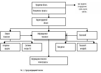Структура информационной технологии - это внутренняя организация, представляющая собой взаимосвязи образующих ее компонентов, объединенных в две большие группы: опорную технологию и базу знаний.