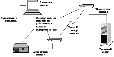 Возможно наиболее важным вопросом в этой ситуации является задержка выполнения операций: время, которое проходит между выдачей запроса и получением ответа. Задержка выполнения операций в локальных сетях не столь критична, поскольку связанные с такими сетями сравнительно короткие расстояния не могут вызвать значительных задержек в среде передачи данных. В глобальных сетях задержки выполнения операций могут происходить просто при транспортировке пакетов из одного пункта в другой. Задержка передачи пакетов складывается из нескольких составляющих: