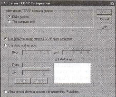 Рис. 10.2. Диалоговое окно конфигурации TCP/IP сервера RAS