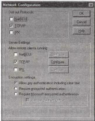Рис. 10.1. Диалоговое окно сетевой конфигурации RAS