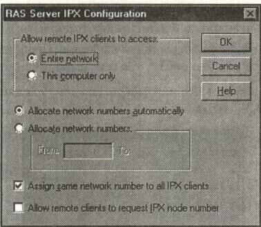 Рис. 10.3. Диалоговое окно конфигурации IPX сервера RAS