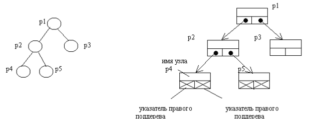 Рис. 7. Представление бинарного дерева в виде списковой структуры.