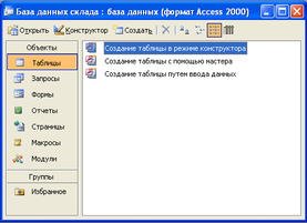 Оптимальным вариантом в нашем случае является «Создания таблицы в режиме конструктор» (Рисунок 2.1.).