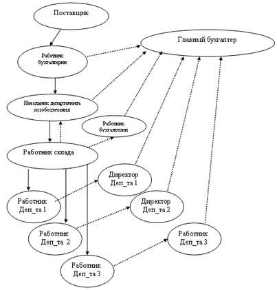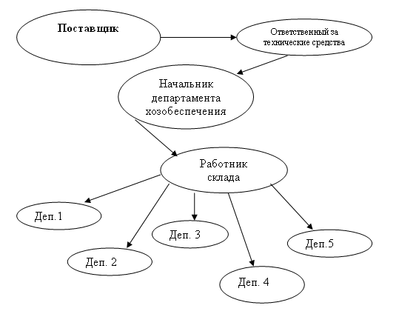 Вот как это выглядит в виде схемы (Рисунок 1.1.). Все это делается во избежание ошибок в отчетах. С древних времен место хранения товаров (склад) был очень уязвим от внешних и внутренних напастей, грабежей и краж. Многоступенчатость процесса получения товаров конечным потребителем от поставщика задумана с целью контроля их доставки, распределения, закупки и экономия.