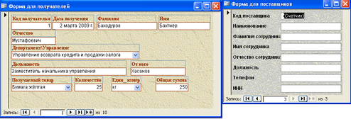 Рис. 2.11. Формы для таблиц «Получатели» и «Поставщики»