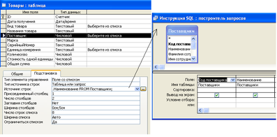 Рис. 2.2. Связь таблицы «Товары» с таблицей «Поставщики».