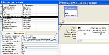 Рис. 2.4. Связь таблиц «Получатели» и «Департамент\Управление».