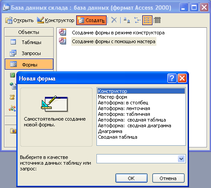 Создание формы с помощью мастера. Форма делается на основе уже созданных таблиц;