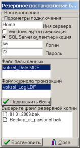 Здесь администратор выбирает настройки сервера и делает операции по подключению и восстановлению базы данных, выбрав из окон файлы.