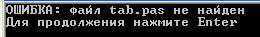Рассмотрим пример работы с файлами. В главном меню выбираем пункт номер 4. Если файл tab. pas с нужными данными существует, то выдается следующее сообщение (рис.10):