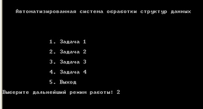 Программный комплекс "Автоматизированная система обработки структур данных" предназначен для работы в операционных системах семейства Windows, состоит из файла progr. exe, никаких дополнительных программных компонентов для работы не требуется. В каталоге с программой также должен располагаться файл tab. pas для решения четвертой задачи.