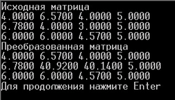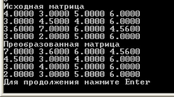 Число 7 – наибольшее значение матрицы стоит в левом верхнем углу преобразованной матрицы. Нажимаем Enter и возвращаемся в главное меню программного комплекса.