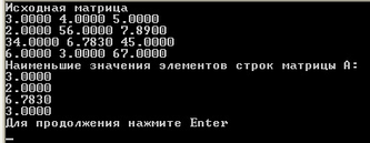 WriteLn('Наименьшие значения элементов строк матрицы A: ');