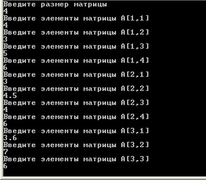 Далее необходимо ввести размер действительной квадратной матрицы и ее элементы (Рис.6):