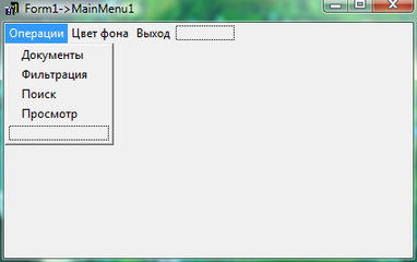 Запускаем Borland C++ Builder. Создаем новое приложение File -> New -> Application. Далее появляется форма (Form1). Установим на нее компонент MainMenu из библиотеки Standart. Щелкаем на нее двойным щелчком, и появится окно для ввода меню. Введем в него наше выше перечисленное меню.