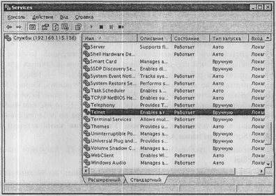 Найдоступніша для віддаленого управління робочими станціям мережі - програма Telnet. Telnet-клієнт існує у всіх операційних системах Windows. Сервер Telnet вбудований тільки в системи, починаючи з Windows 2000 і старше. Для запуску цього серверу на робочих станціях мережі можна скористатися засобом Управление комп’ютером, або Службы (Services) з папки Администрирование.