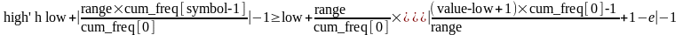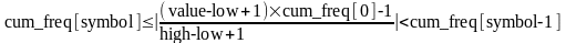cum_freq[symbol] <= (value - low)/(high - low) < cum_freq[symbol-1]