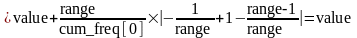 Из выружения (1) имеем: ≤value + 1 – 1/cum_freq[0], поэтому low'≤value, т.к. и value, и low', и cum_freq[0] > 0.