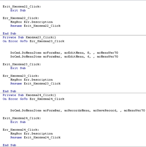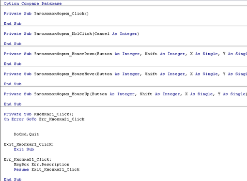 6. Модулі – програми, написані мовою Visual Basic для програм, за допомогою яких можна автоматизувати будь-яку процедуру, що виконується в БД.
