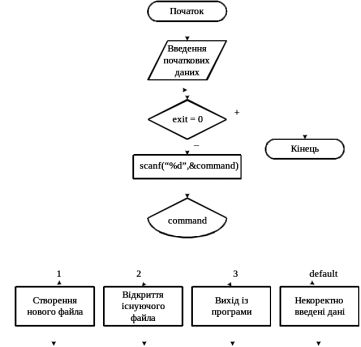 Програма дуже проста у користуванні. Робота даної програми починається з підключення стандартного модуля введення-виведення stdio та модуля string для підключення функції strcmp, яка виконує порівняння. Далі задаються кількість символів, які максимально може містити назва файлу, і текст файлу. Потім програма дозволяє зробити вибір: перше – це створити новий файл, наступне – відкрити вже існуючий файл і третє – це завершити виконання програми. Дана програма працює в циклі, що дозволяє відкривати або створювати файл стільки разів, скільки необхідно. У будь який час можна завершити виконання програми введенням ключового слова exit.