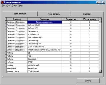 Результаты работы запроса выводятся в стандартном окне «Browse». Если в базе данных нет записи полностью удовлетворяющей созданному запросу, на экран будет выдано соответствующее сообщение.