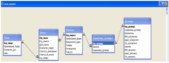 Рис.1 Схема данных БД "Отгрузка товаров в разрезе клиентов"