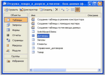 Создадим базу данных "Отгрузка товаров в разрезе клиентов" в СУБД MS Access. Основным назначением базы данных "Отгрузка товаров в разрезе клиентов" будет автоматизация функции по учету клиентов и заказов.