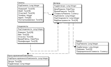 - КодРемонта. Поле, в которое вводится номер ремонта. Данное поле является первичным ключом;